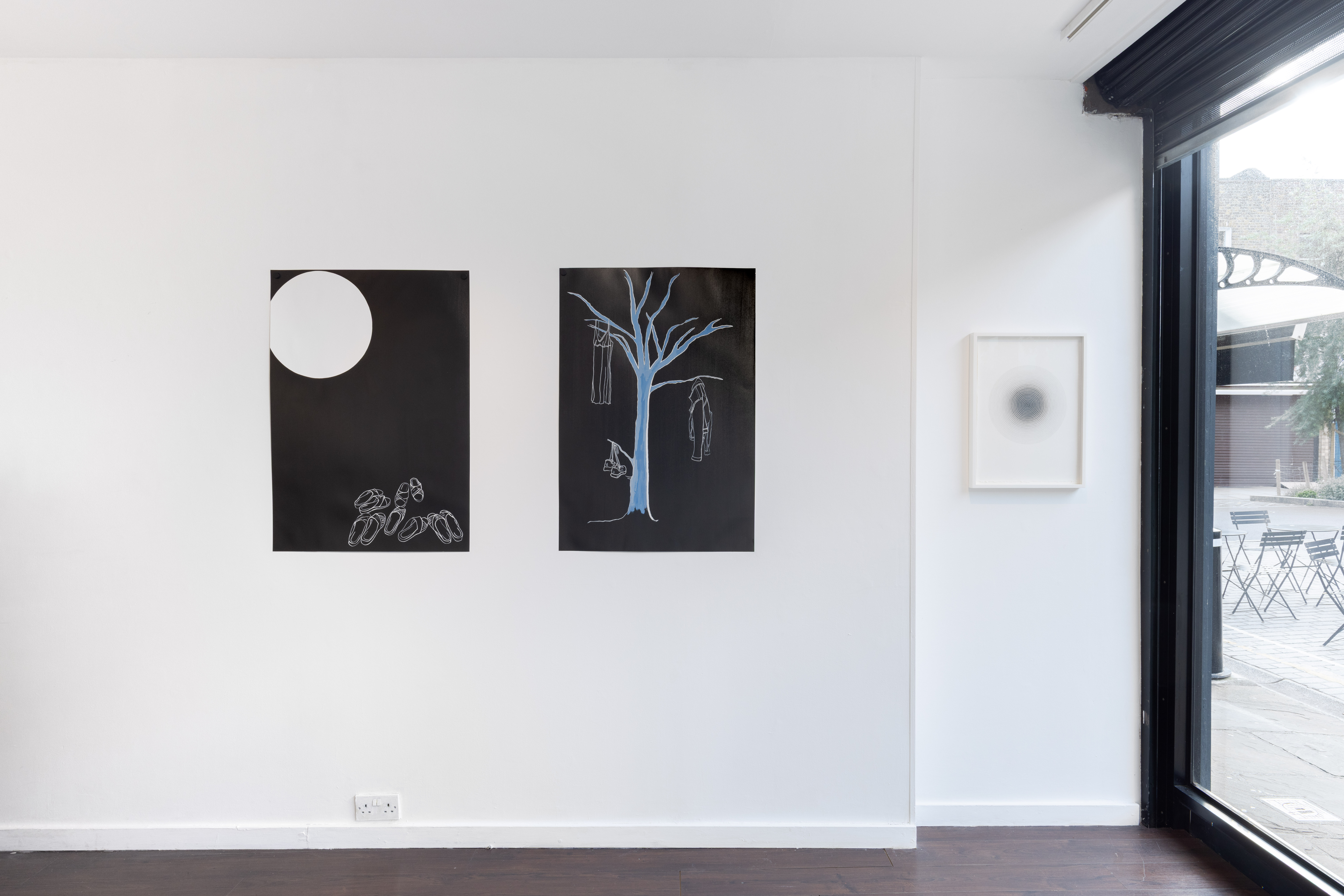 A series of drawings about death and the afterlife, inspired by Fay Ballard’s residency at the Pier Arts Centre in the Orkney Islands and trip to Japan in 2024. In Japan and Orkney, she explored Neolithic sites, Jomon settlements, and visited Mt. Osore, a remote active volcano where the mythical river Sanzu takes us to the afterlife. Using black sumi ink from Japan, the drawings affirm the imagination’s ability to invent grieving rituals and other worlds after we die.
